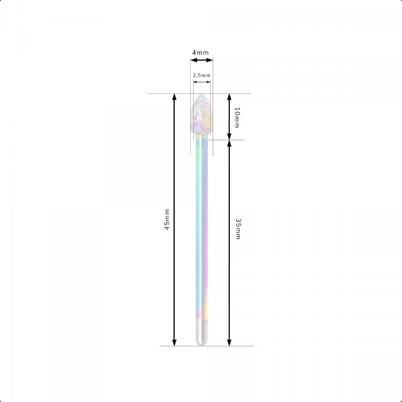 (removing gel and acrylic mass, matting the tips threshold, smoothing keratinized epidermis, useful in removing thickened cuticles from the side of the nail and cleaning artificial nails from below, grinding and giving the final shape to nails, for making cavities in gel or acrylic, etc.)