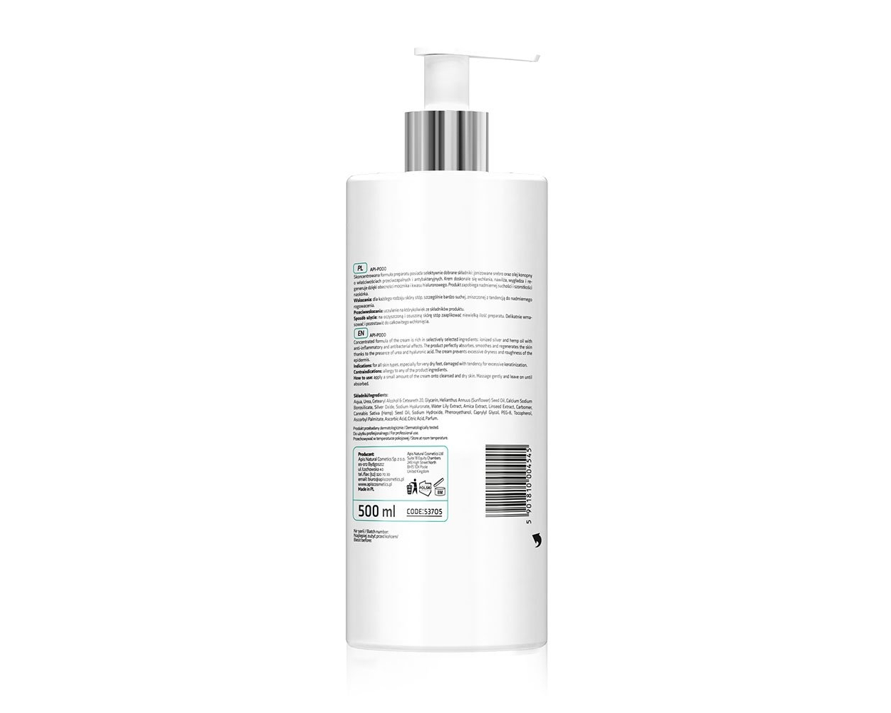 APIS – Api-Podo Regenerating & Hydrating Feet Cream with 20% Urea & Ionized Silver 500ml