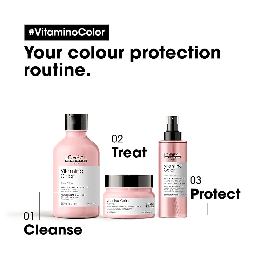 After washing hair with Serie Expert Vitamino shampoo, coat the client’s hair with the luxurious Vitamino conditioner for an added treat. The rich formula enriched with A-OX will ensure that coloured hair is easy to detangle and the colour is bright and radiant. Alongside enviable shine, the conditioner will protect hair fibres and ensure hair is healthy from root to tip. Add this effective product to your retail offering and let clients protect their colour at home or on the go.