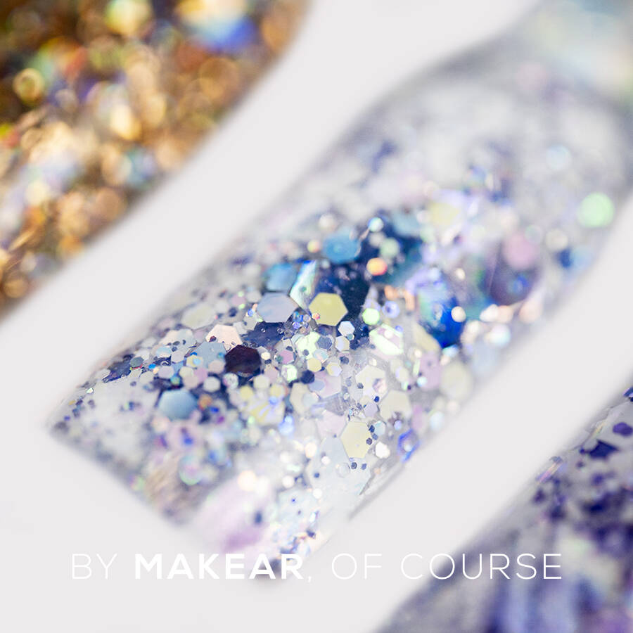 The multicoloured particles of different sizes and shapes reflect light, creating a fantastic shine effect. You can adjust the intensity by choosing the appropriate amount of particles. The gel has a medium-thick consistency, making it easier to spread, especially around the cuticles.