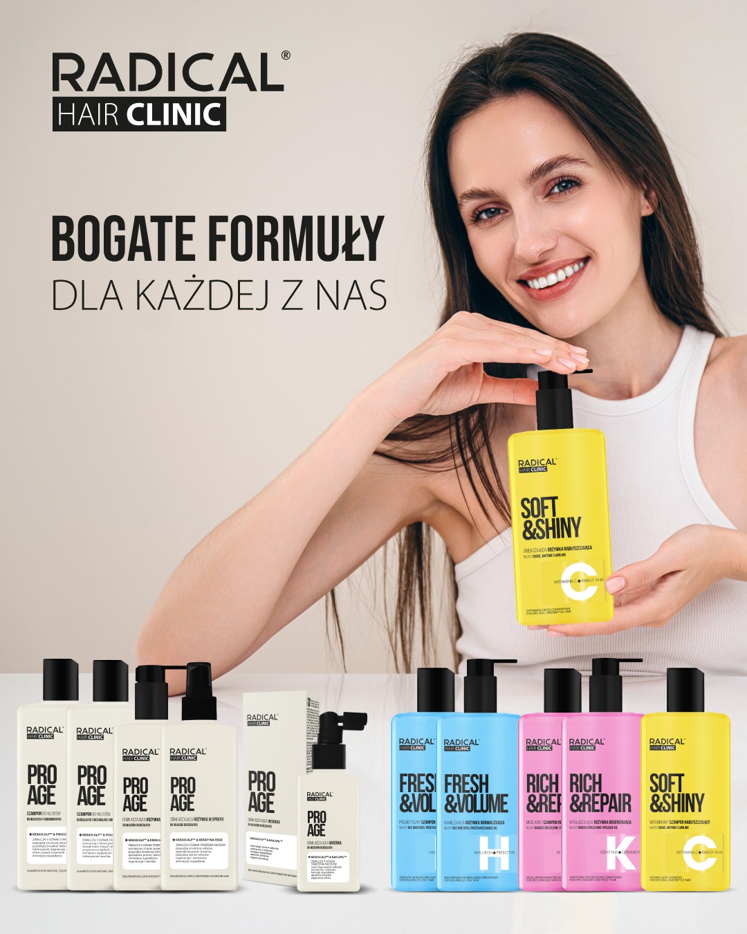 Directions for use: Apply the conditioner to washed, damp hair. Leave on for 3–4 minutes and rinse with water. For best results, use together with RADICAL Hair Clinic SOFT & SHINY Shampoo.