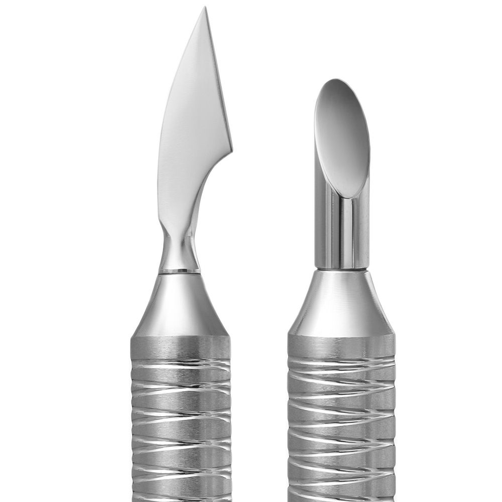 - the working part “slanted pusher” is used to lift and push back coarse and heavily adhered cuticles, cleanse the nail’s free edge and remove polymerized gel polish drips