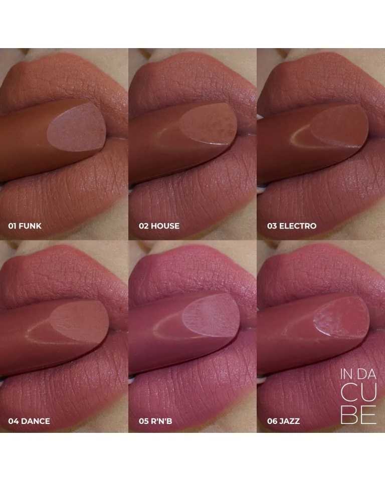 IN DA CUBE lipstick strikes the perfect balance between longevity and comfort, housed in a stunning ice cube-like packaging. The satin finish looks like a soft matte and feels incredibly comfortable, while maintaining optimal longevity. The cocoa seed butter contained in the formula is rich in nutrients that moisturise and protect, while the cosmically appetising panna cotta scent is incredibly tempting.