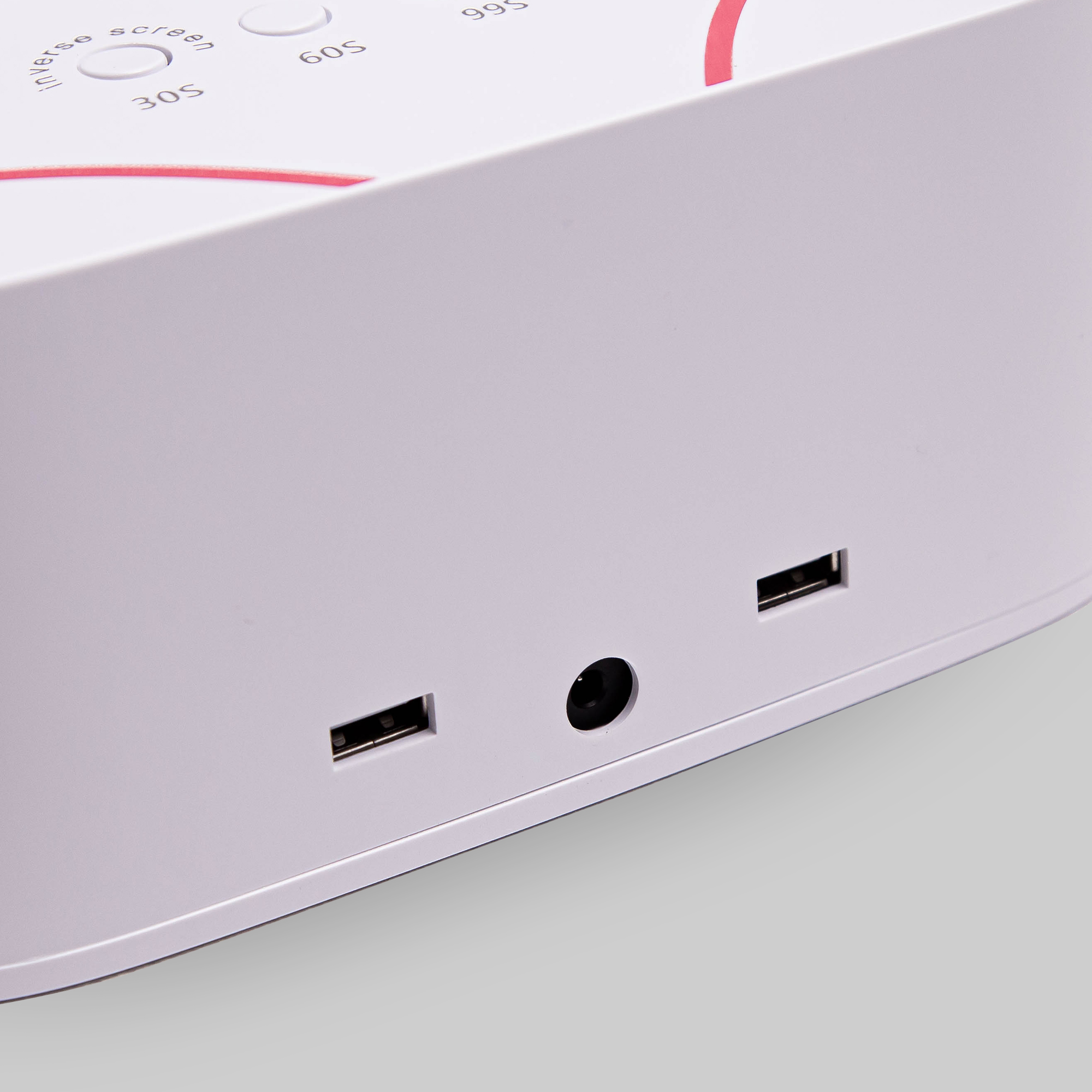 Double light technology: disperses a wider spectrum of UV spectrum due to 30 LEDs than conventional LED lamps, ensuring complete polymerisation of different types of gels. Touch sensor allows the lamp to switch on automatically when the customer puts their hand in the lamp. Built-in battery provides mobility and ease of use. The bottom plate of the lamp can be easily removed, making it ideal for use during a pedicure. Additional USB ports: The integration of USB ports into the ÜLKA lamp allows users to charge mobile devices while working.