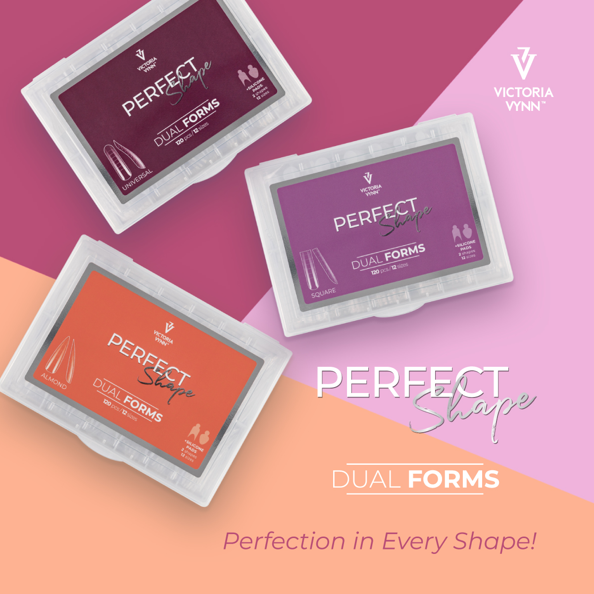 The Dual Forms come in 3 different shapes, each available in 12 sizes, making it easier to match the width of the form with the natural nail plate and create the perfect side edges. Each package of PERFECT Shape DUAL FORMS contains 120 forms in twelve sizes, from 0 to 11. The set includes 2 types