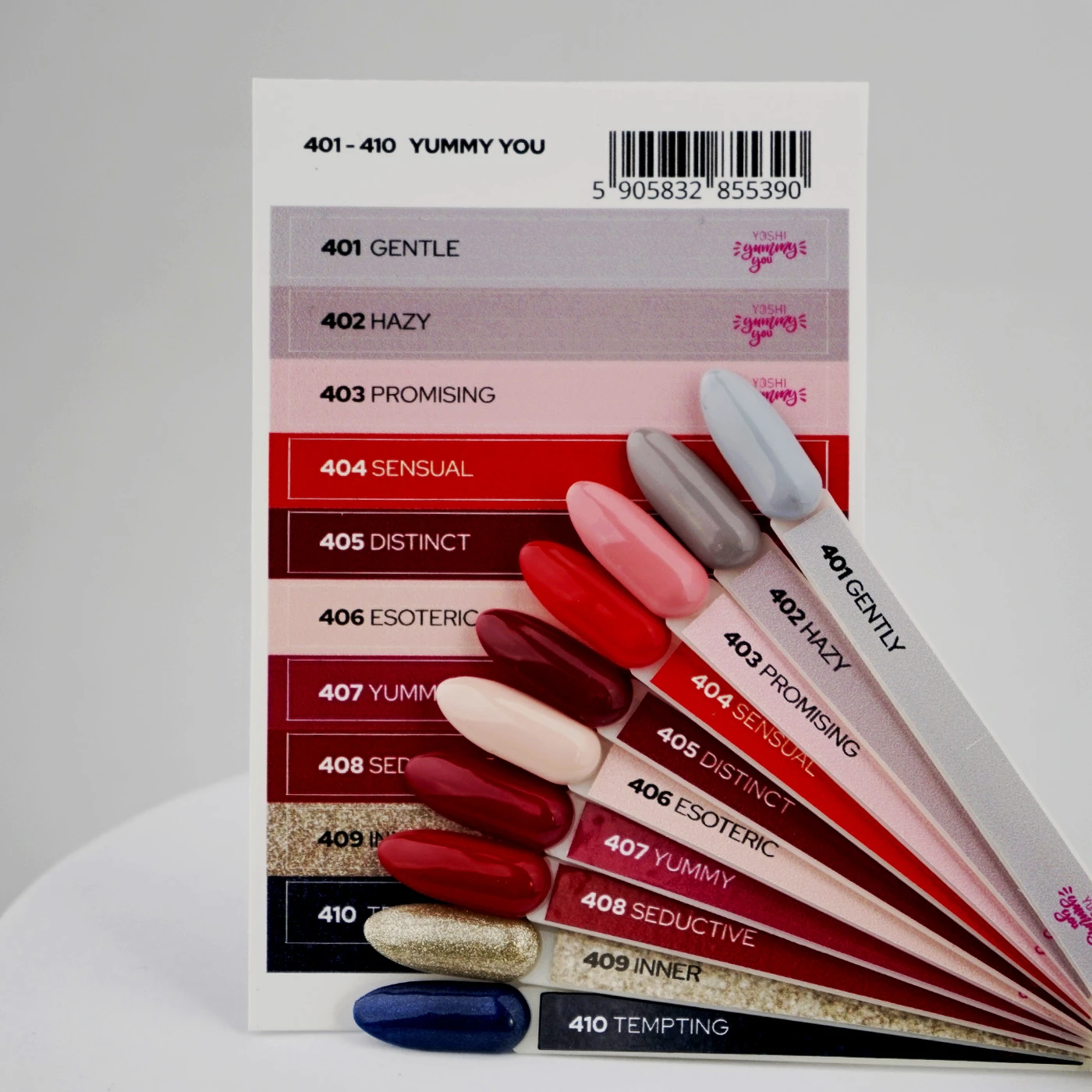 YOSHI 402 Hazy. Freedom. Fun, in line with your true nature. This shade portrays an innocent beige, a decidedly guilty lingerie colour (colour only known as “panty pink”), with a touch of eosin. The perfect nail polish for a look that seems safe at first glance, but with a tempting twist.
